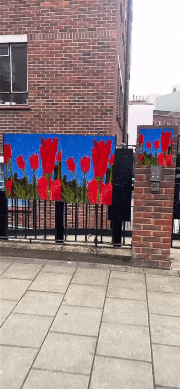 In a personal experiment, I explore mixing physical and digital art forms. I showcased my childhood oil knife painting digitally all over signs and buildings in London, investigating if it is still considered vandalism, as there is no physical harm or trace